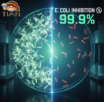 Trong điều kiện thí nghiệm, sản phẩm có khả năng ức chế vi khuẩn E.coli lên đến 99,9%. Giúp hạn chế vi khuẩn gây mùi và mầm bệnh trong nhà vệ sinh.
